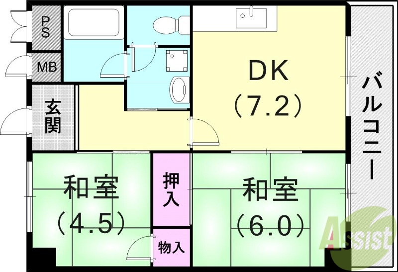| 間取り詳細 | 和6 和4.5 DK7.2 | 構造 | 鉄筋コン |
