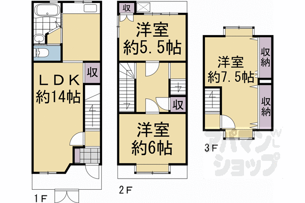 | 間取り詳細 | 洋7.5 洋6 洋5.5 LDK14 | 構造 | 木造 |