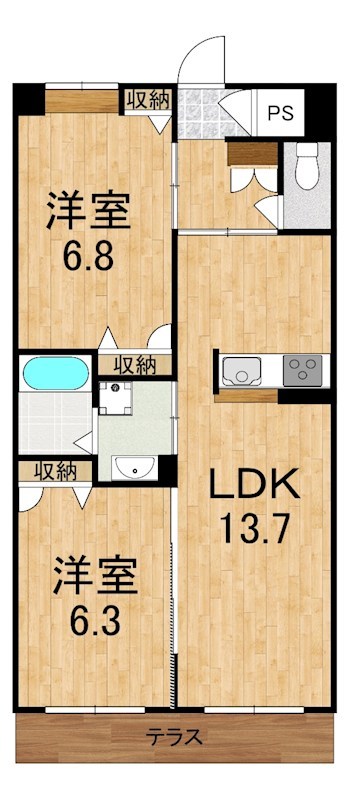 | 間取り詳細 | 洋6.8 洋6.3 LDK13.7 | 構造 | 鉄骨 |