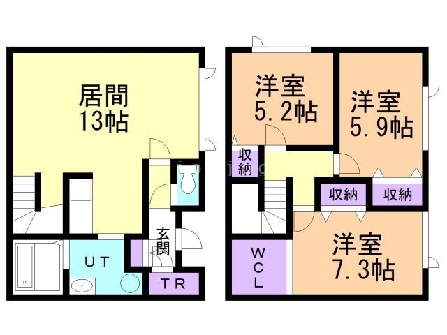 | 間取り詳細 | 洋7.3 洋5.9 洋5.2 LDK13 | 構造 | 木造 |