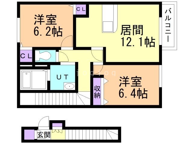 | 間取り詳細 | 洋6.4 洋6.2 LDK12.1 | 構造 | 軽量鉄骨 |
