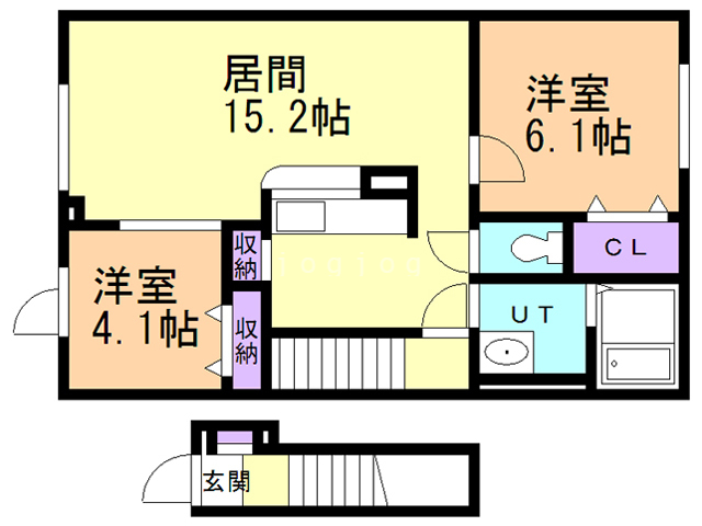 | 間取り詳細 | 洋6.1 洋4.1 LDK15.2 | 構造 | 木造 |