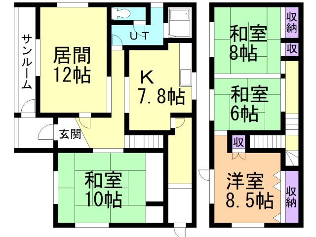 | 間取り詳細 | 和10 和8 和6 洋8.5 L12DK7.8 | 構造 | 木造 |
