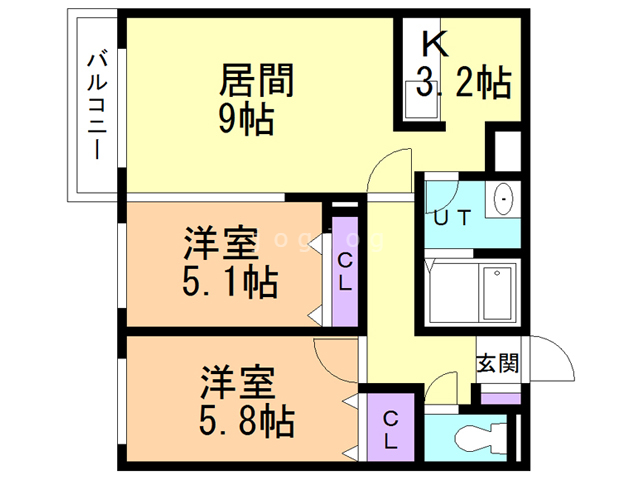 | 間取り詳細 | 洋5.8 洋5.1 LD9K3.2 | 構造 | 鉄筋コン |
