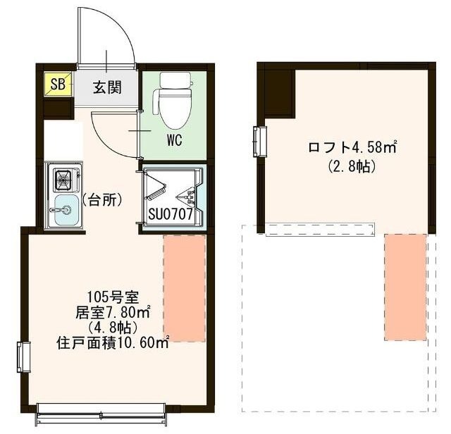 | 間取り詳細 | 洋4.8 ロフト 2.8 | 構造 | 軽量鉄骨 |