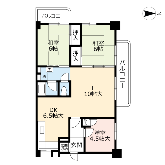| 間取り詳細 | 和6 和6 洋4.5 DK6.5L10 | 構造 | 鉄筋コン |