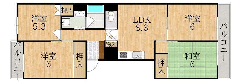 | 間取り詳細 | 和6 洋6 洋6 洋5.3 LDK8.3 | 構造 | 鉄筋コン |