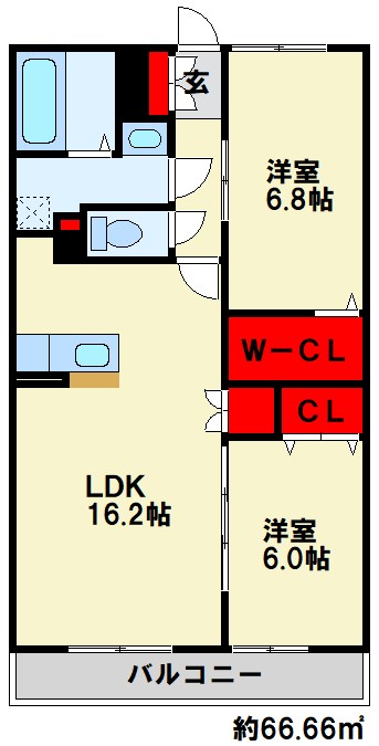 | 間取り詳細 | 洋6.8 洋6 LDK16.2 | 構造 | 木造 |