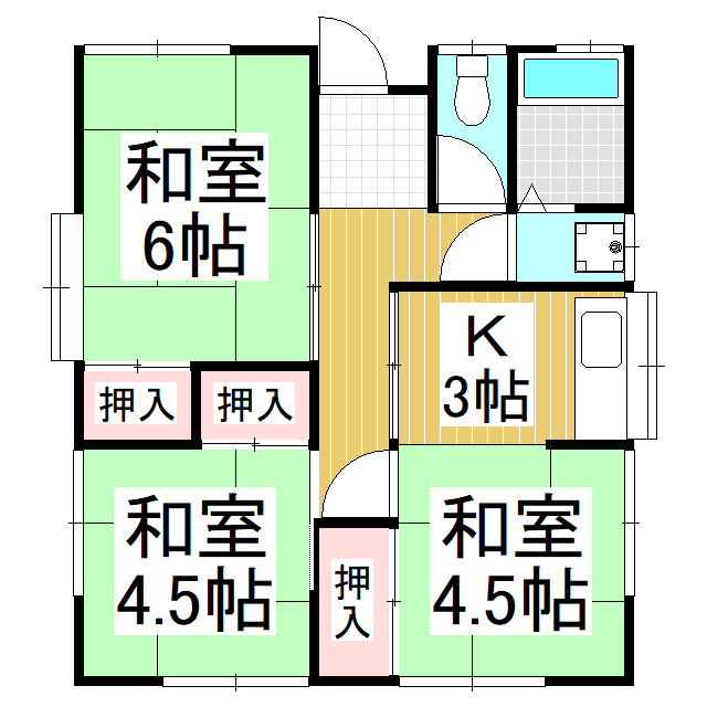 | 間取り詳細 | 洋6 洋4.5 洋4.5 K3 | 構造 | 木造 |