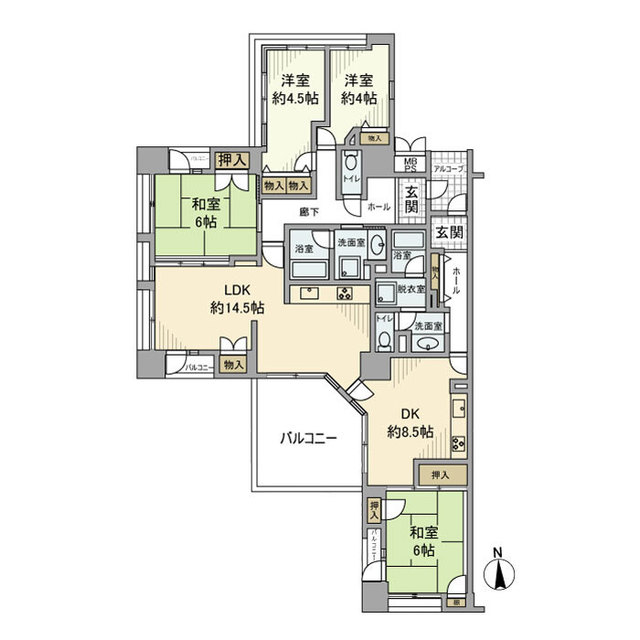 | 間取り詳細 | 和6 和6 洋4.5 洋4 LDK14.5 | 構造 | 鉄骨鉄筋 |