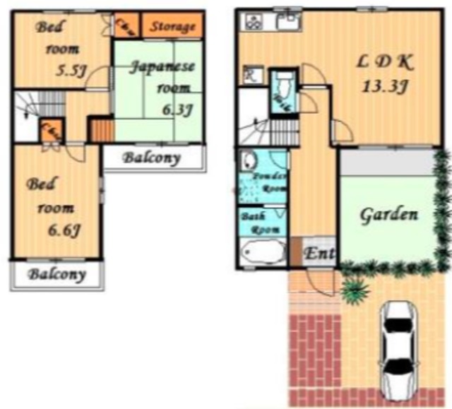 | 間取り詳細 | 和6.3 洋6.6 洋5.5 | 構造 | 軽量鉄骨 |