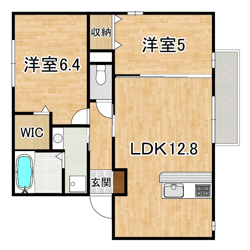 | 間取り詳細 | 洋6.4 洋5 LDK12.8 | 構造 | 軽量鉄骨 |