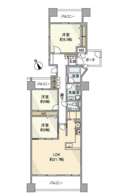 | 間取り詳細 | 洋9.3 洋6 洋6 LDK21.7 | 構造 | 鉄骨鉄筋 |