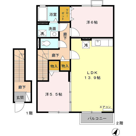 | 間取り詳細 | 洋6 洋5.5 LDK13.9 | 構造 | 軽量鉄骨 |