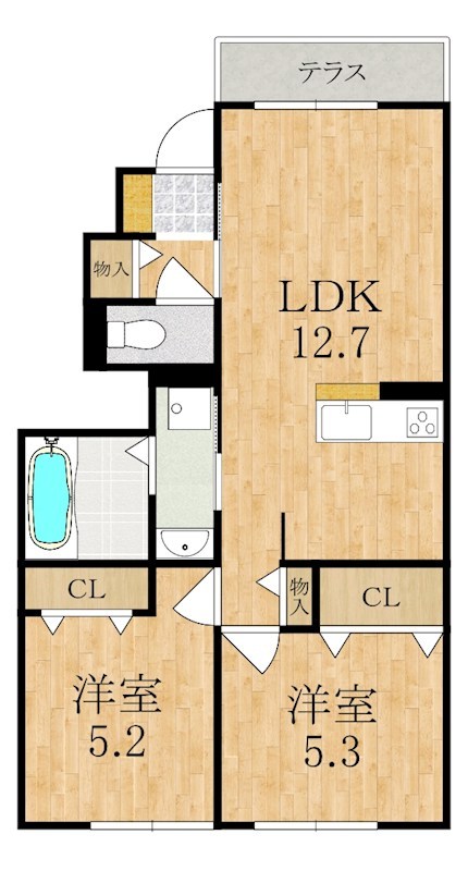 | 間取り詳細 | 洋5.3 洋5.2 LDK12.7 | 構造 | 軽量鉄骨 |