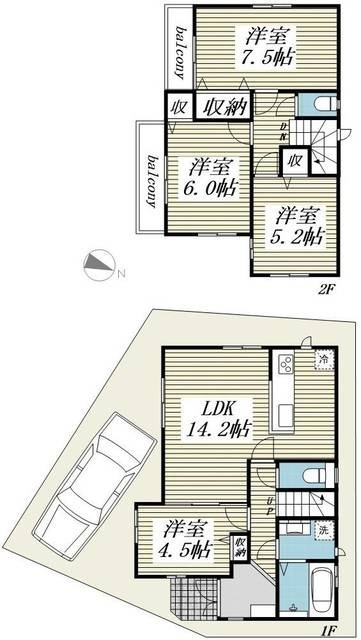 | 間取り詳細 | 洋7.5 洋6 洋5.2 洋4.5 LDK14.2 | 構造 | 木造 |