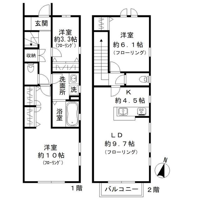 | 間取り詳細 | 洋10 洋6.1 洋3.3 LD9.7K4.5 | 構造 | 木造 |