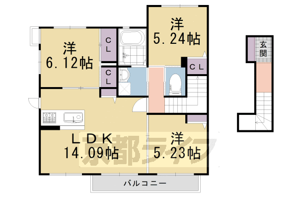 | 間取り詳細 | 洋6.12 洋5.24 洋5.23 LDK14.09 | 構造 | 軽量鉄骨 |
