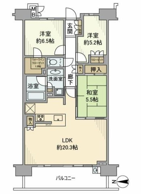 | 間取り詳細 | 和5.5 洋6.5 洋5.2 | 構造 | 鉄筋コン |