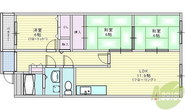 | 間取り詳細 | 和6 和6 洋6 LDK11.9 | 構造 | 鉄筋コン |