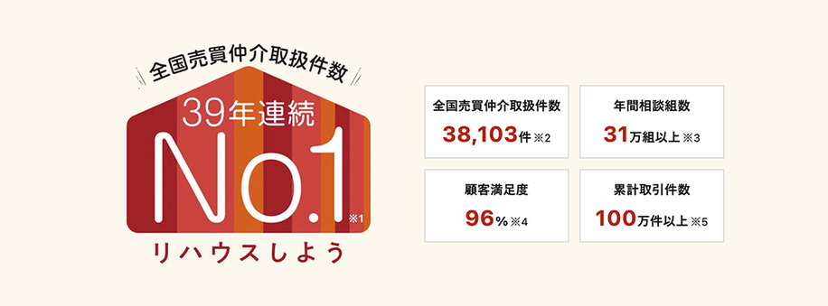 39年連続「全国売買仲介取扱件数No.1」。永きにわたり築き上げてきた、安心と信頼のブランド