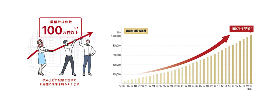 ※1 1975年の売買仲介業務開始以来の累積取扱件数(同社調べ/累積取扱件数説明図)