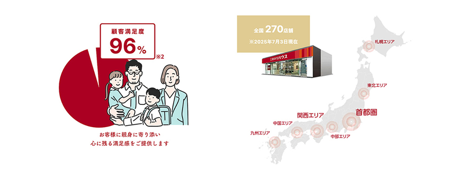全国主要都市を中心に270店舗を展開。それぞれの地域に合わせたきめ細やかなサービスで対応